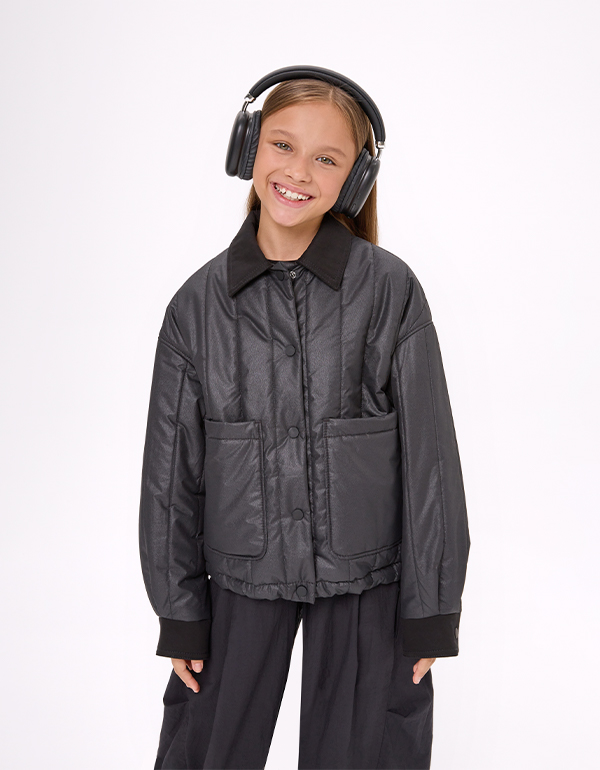 Чёрная стёганая куртка для девочки