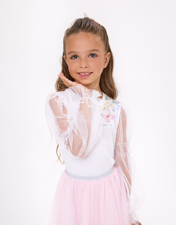 Укороченная белая блузка с воздушными рукавами для девочки