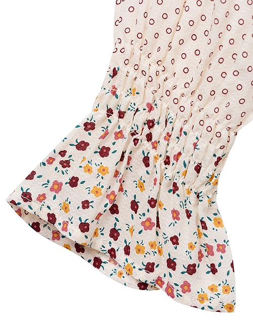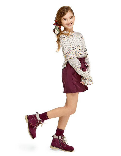 Изящная блузка на пуговицах, со сборкой на рукавах, наполняет образ восхитительным романтизмом и лёгкостью. Нежная струящаяся ткань подарит девочке ощущение комфорта и непринуждённости