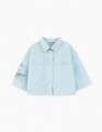 Кроп-рубашка освежающего водного оттенка для девочки. Прямая укороченная модель. Спущенная линия плеча. Комфортная застёжка на кнопки. Рубашка из поплина с эффектом "жатости", придаёт оригинальный внешний вид и не требует глажки. Авторский принт.