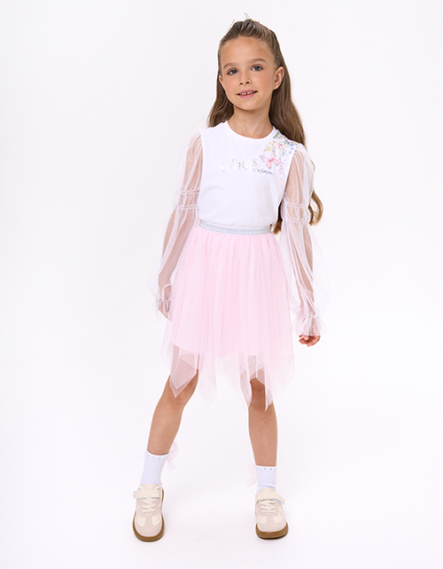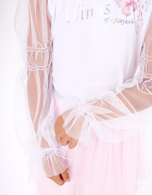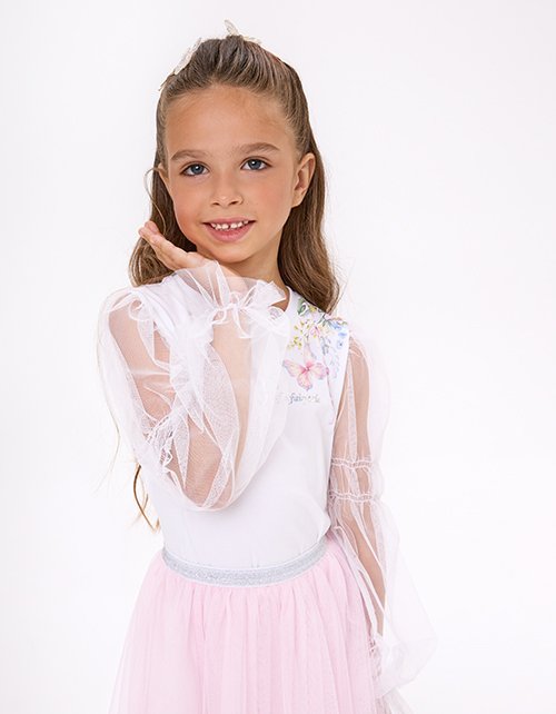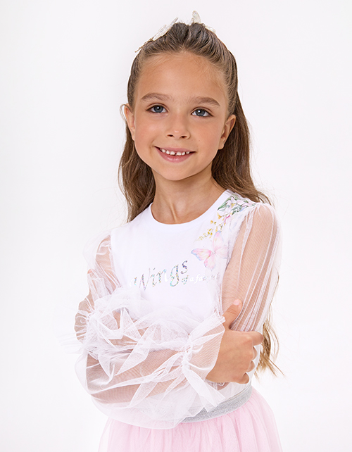 Укороченная белая блузка с воздушными рукавами для девочки
