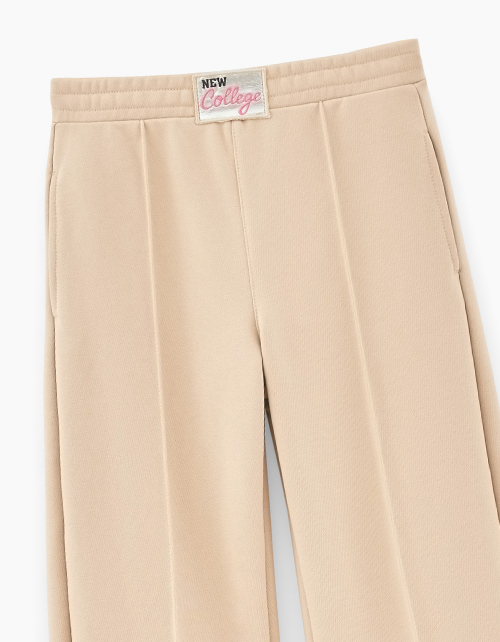 Широкие брюки для девочки. Трендовый оттенок сливочный латте и модная форма. Комфортная модель на эластичном поясе.