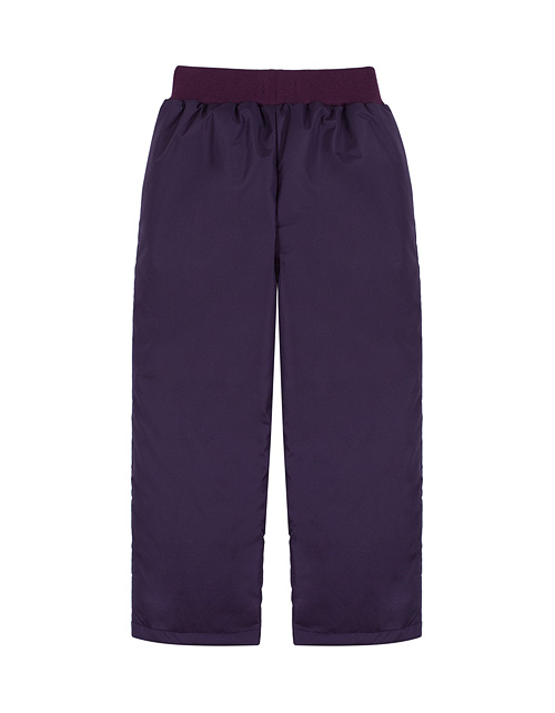 Брюки для девочки на синтепоне прямого силуэта дополнены широким поясом на резнике и небольшой нашивкой. Ткань матовая плащевая дьюспо не пропускает влагу, а подкладка из нейлона дарит дополнительный комфорт.
