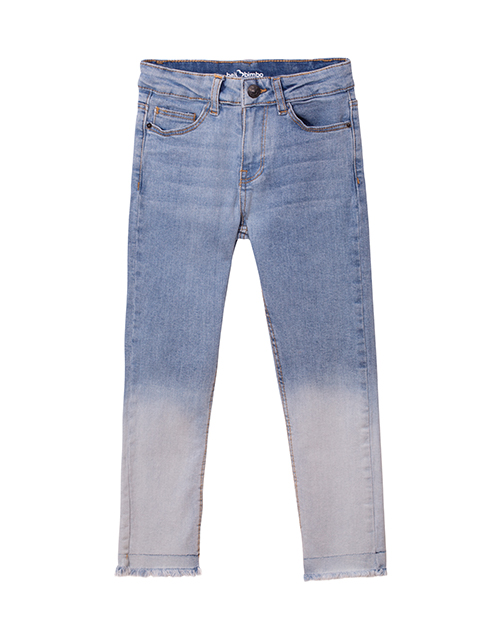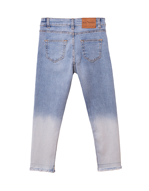 Джинсы для девочки силуэта скинни. Эффект "деграде". Передние и задние накладные карманы. Шлёвки по поясу. Низ изделия с эффектом потрепанности.