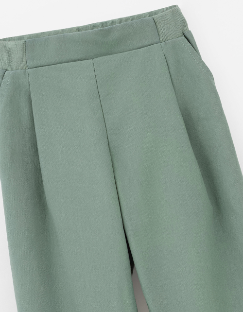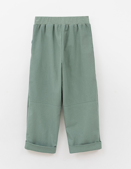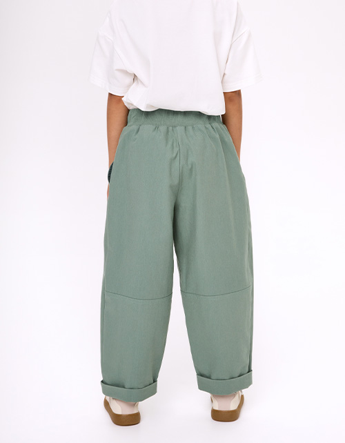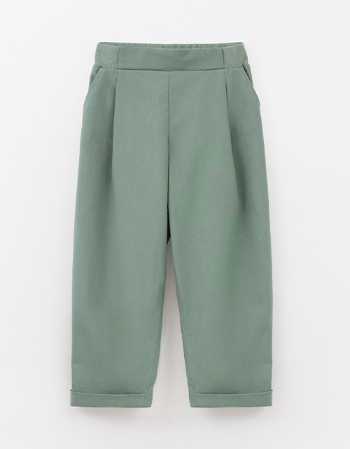Брюки-багги из твила. Объёмный силуэт с закреплёнными отворотами и длиной до щиколотки создаёт стильный акцент. Средняя посадка удобна, комбинированный пояс с внутренней резинкой фиксирует объём. Боковые карманы подчёркивают утилитарный характер.