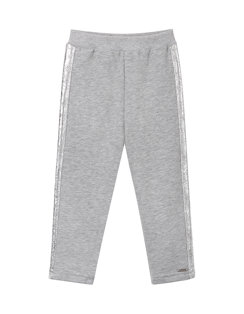 Мягкие свободные брюки в спортивном стиле, выполненные из натуральных материалов - лучшее решение на каждый день для Вашей малышки! Особый шик изделию придают серебристые лампасы. Приятный комфортный материал сделает эти штанишки самыми любимыми