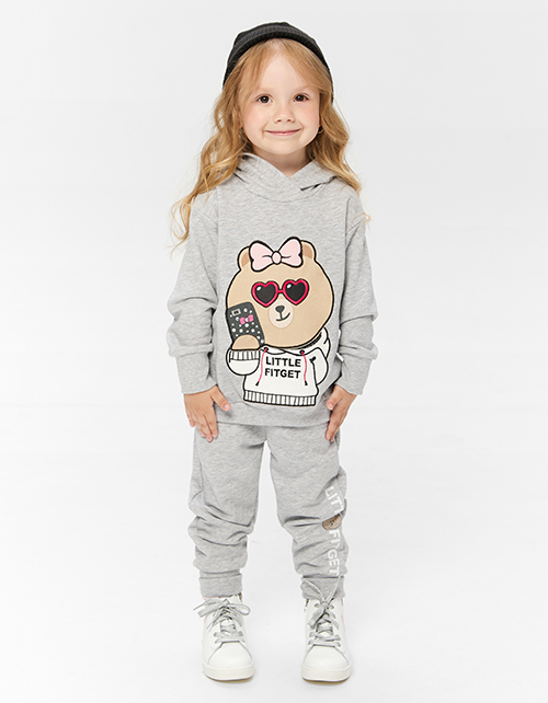 Стильные брюки-джоггеры цвета серый меланж для девочки. Комфортная модель на эластичном поясе. Брюки декорированы цифровой печатью.