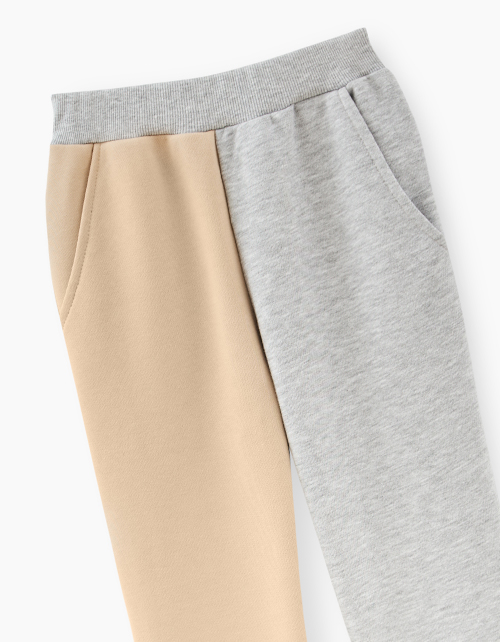 Брюки-джоггеры в стиле колор-блок для девочки. Комфортная модель на эластичном поясе с наклонными боковыми карманами. Брюки декорированы трансферной пленкой.