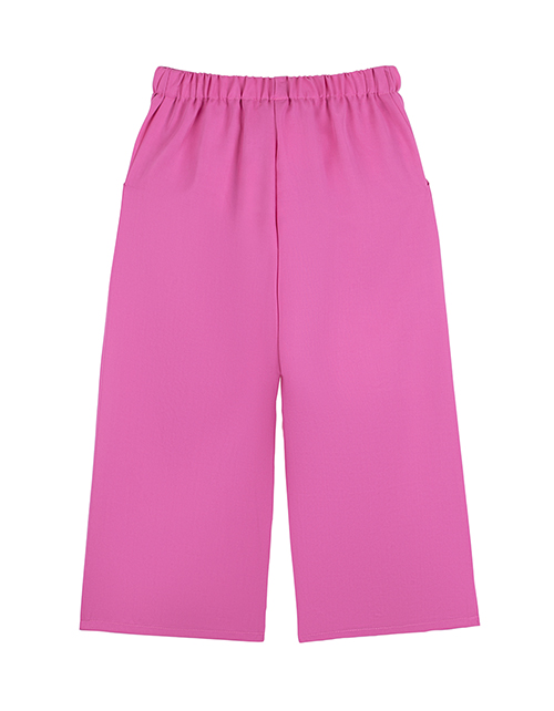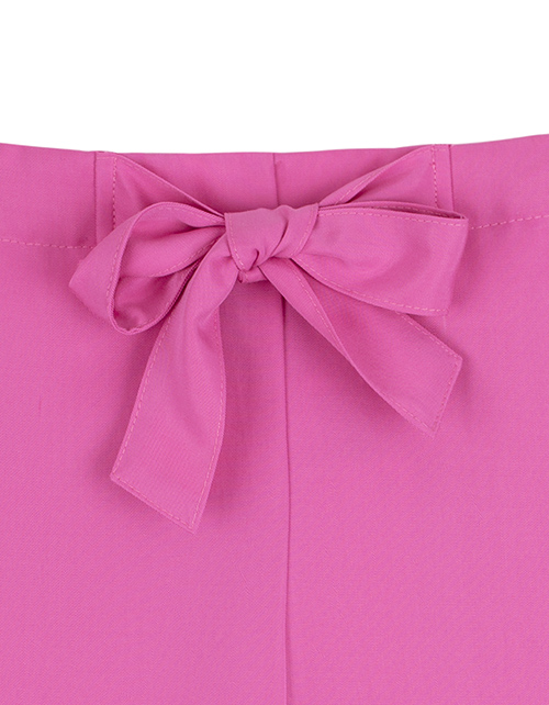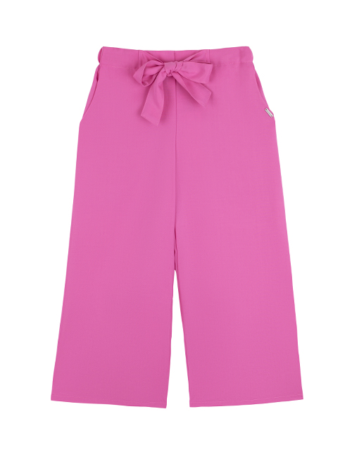 Розовые брюки-кюлоты для девочки свободного силуэта. Эластичная талия с завязывающимся бантом по переду. Функциональные карманы. Оформление в стилистике капсулы "Чаепитие в саду.