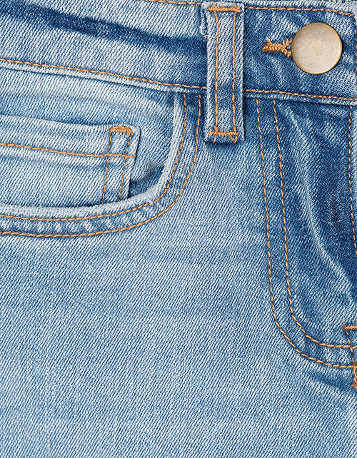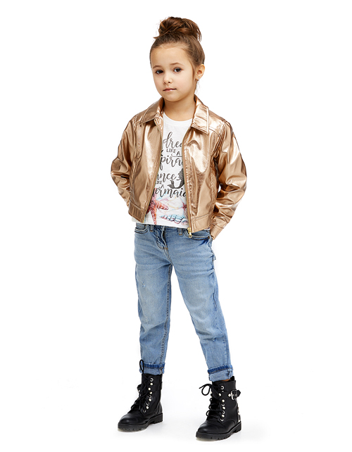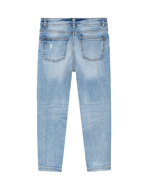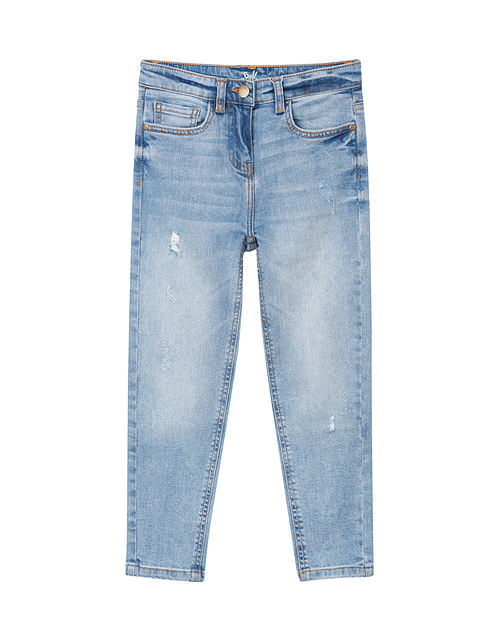 Удобные джинсы просто незаменимы в гардеробе! Они отлично сочетаются с любой одеждой, их можно носить куда угодно и при этом выглядеть стильно. Актуальная модель понравится маленькой моднице: она выполнена в ретро-стилистике и декорирована потертостями