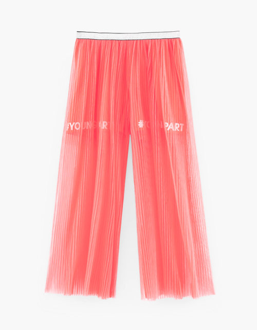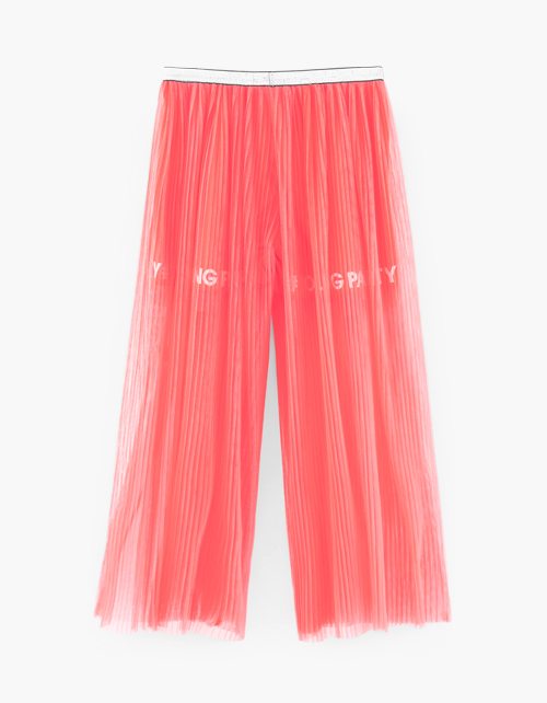 Нарядные коралловые широкие брюки для девочки. Модель с эластичным поясом с люрексом.
