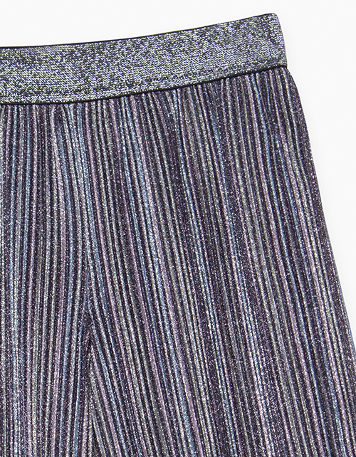 Эффектные брюки-кюлоты из блестящего трикотажного гофрированного полотна "мультиколор", на поясе из эластичной ленты с блестками.