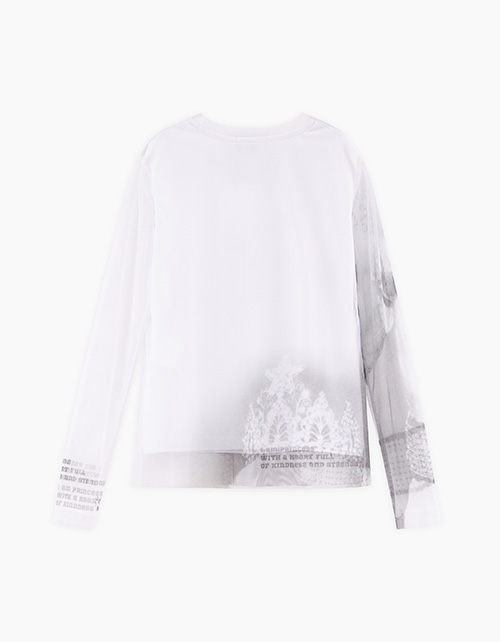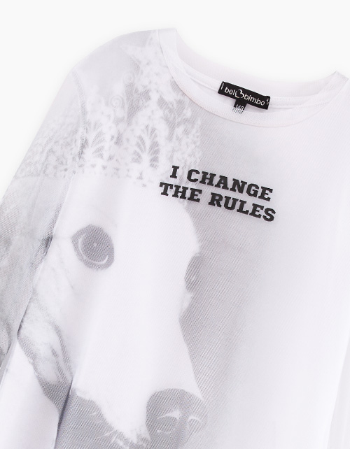 Дизайнерский лонгслив для девочки. Модель прилегающего силуэта. Изделие без застёжки. Тактильно приятный лонгслив благодаря комбинации материалов: кулирной глади и сетчатого полотна. Авторский цифровой принт и трансферная печать.