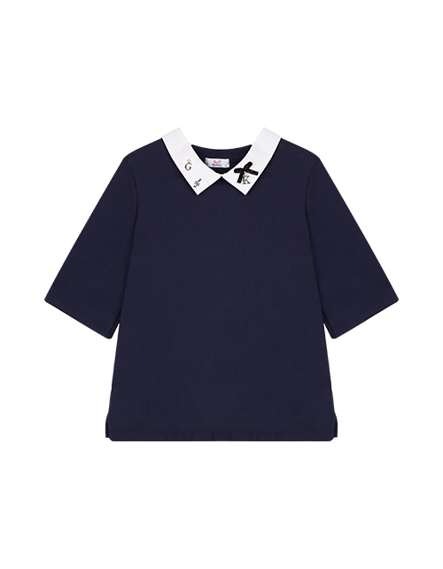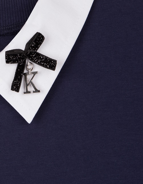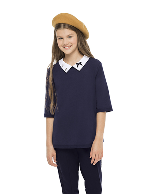Джемпер для девочки из тонкого футера - синтез красоты и комфорта. Свободный силуэт, длина рукава 3/4 и белый отстегивающийся воротник, элегантно декорированный подвесками, делают джемпер превосходным вариантом на каждый день и для торжественных случаев!