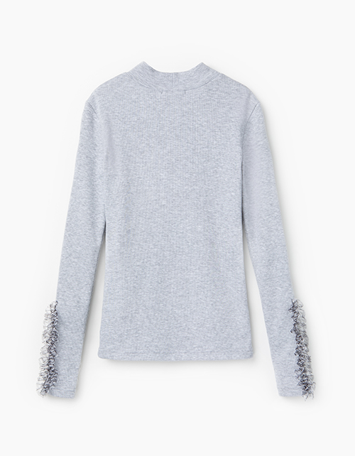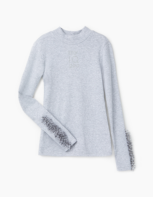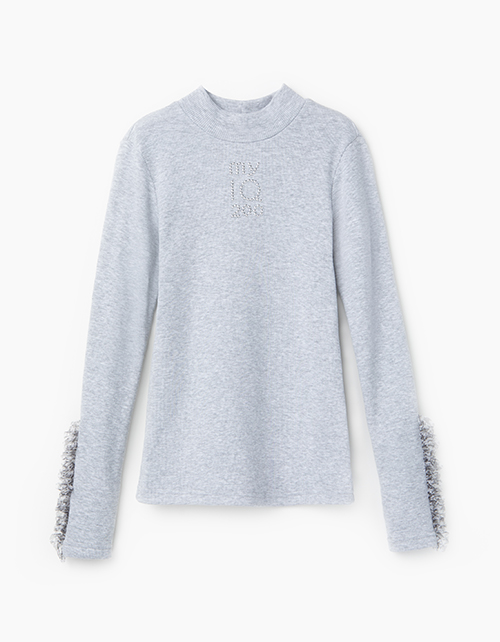 Джемпер прилегающего силуэта с невысокой стойкой. Мягкий и практичный. Дышащий, но сохраняющий тепло. Отделка по рукаву в виде изящной рюшечки из сетки. В тон джемпера спереди - лаконичная вышивка из страз "My IQ200".