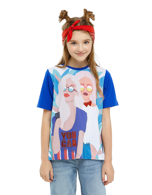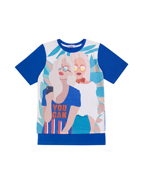 Оверсайз футболка с удлинённой спинкой и разрезами по бокам - идеальное решение для стильного повседневного образа. Насыщенные цвета, блестящий глиттер и оригинальный принт подчёркивают характер и яркую индивидуальность девочки