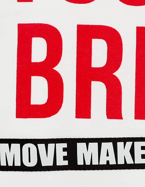Эксклюзивный топ декорирован принтом и контрастной лентой с мотивационной надписью. В нём просто невозможно остаться незамеченной! Натуральная ткань позволяет наслаждаться комфортом, а стильный дизайн - заслуженным вниманием
