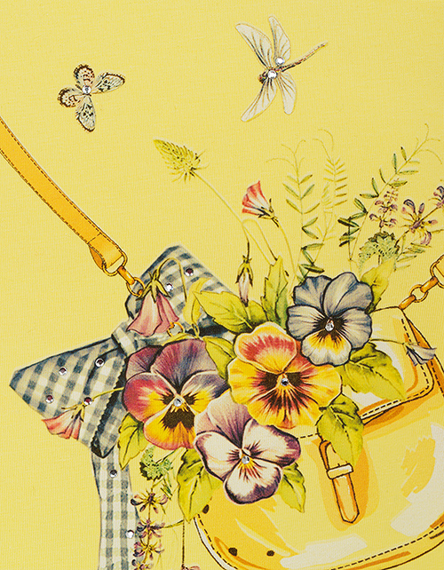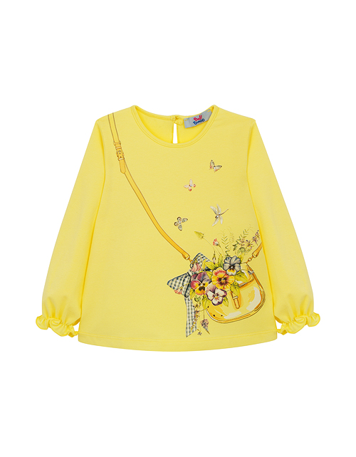 Мягкая незабываемая кофточка сделает Вашу малышку самой неотразимой! Натуральная ткань и свободный крой обеспечат необходимый ребенку комфорт. Очаровательный принт с сумочкой, цветами и порхающими бабочками, подчеркнёт обаяние Вашей девочки