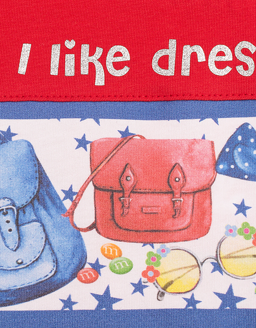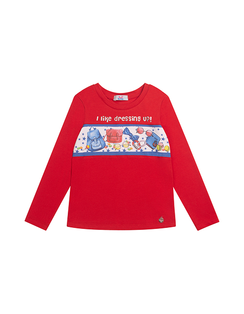 Каждая девочка обожает ходить по магазинам! Об этом рассказывает надпись на стильном лонгсливе, украшенном принтом с любимыми покупками: сумочками, рюкзаками, солнцезащитными очками. Идеально впишется в яркий образ современной юной модницы