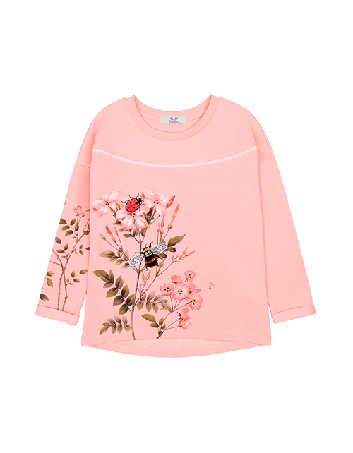 Ультрамодный романтичный свитшот с фотореалистичной печатью для маленькой феи. Нежная расцветка и сочные рисунки придают изделию весеннюю легкость и гармоничность образа