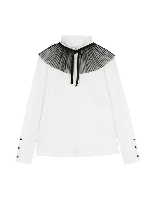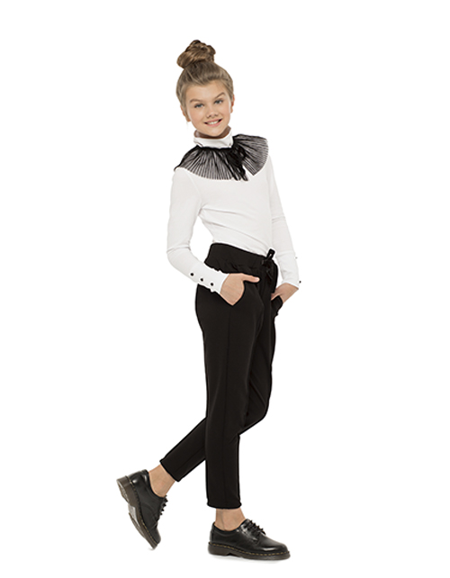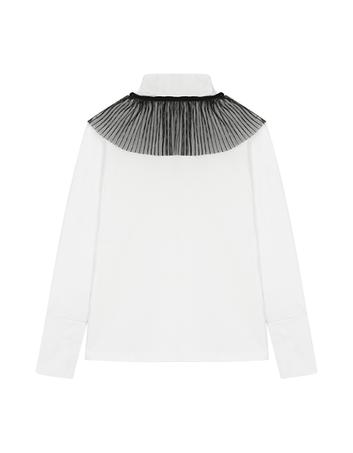 Белая водолазка для девочки с комфортными высокими манжетами - отличная альтернатива белой блузке в прохладный день! Съёмный воротник из лёгкой сетки плиссе поможет создать незабываемый торжественный образ!