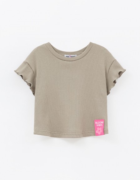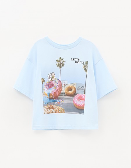 Белая футболка с дизайнерским принтом для девочки. Модель прямого силуэта. Эластичная горловина из рибаны. Спущенная линия плеча. Футболка декорирована стразами.