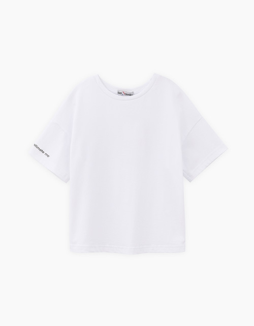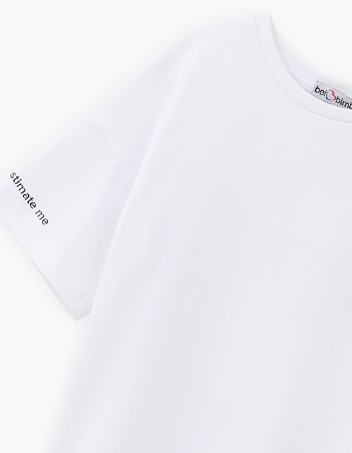 Белая футболка. Прямая объёмная модель со спущенной линией плеча. Удлинённые рукава и эластичная горловина из рибаны обеспечивают комфорт. Авторский мотивационный принт. Универсальные модель, которая легко комбинируется и подходит для разных случаев.