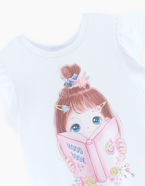 Стильная белая туника с тематическим принтом для девочки. Комфортная летняя модель декорирована стразами.