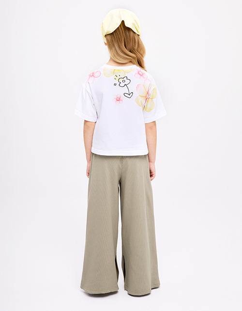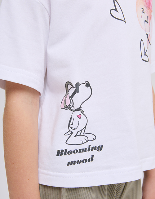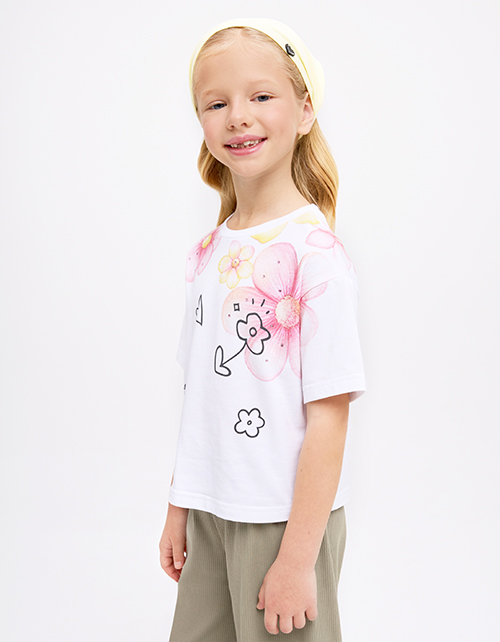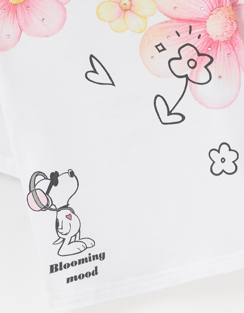 Белая укороченная футболка из мягкого хлопка создаёт лёгкий, современный образ. Oversize-посадка и прямой крой дают свободу движений. Авторский цифровой принт со стразами добавляет выразительный акцент и подчёркивает характер модели.