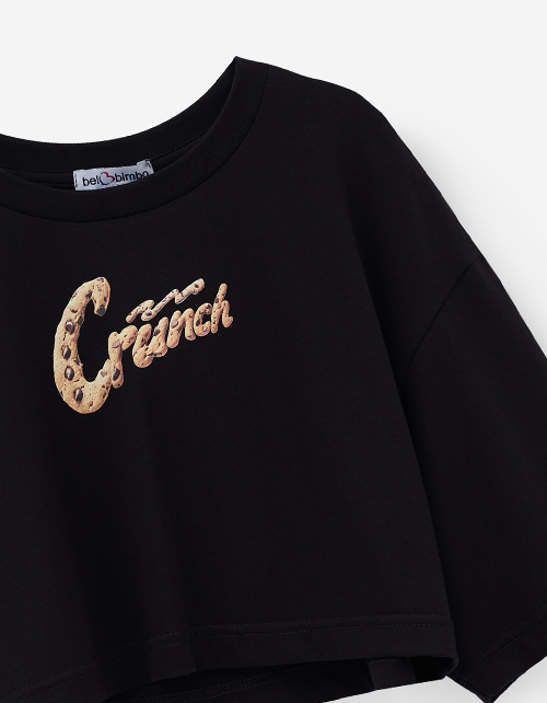 Чёрная укороченная футболка для девочки
