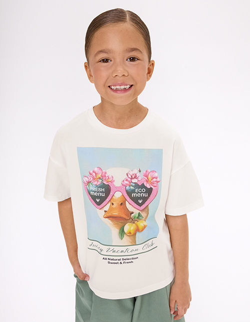 Молочная футболка из мягкого хлопка создаёт свежий, лаконичный образ. Прямой крой обеспечивает комфорт и остаётся удобным в движении. Авторский цифровой принт со стразами добавляет выразительный акцент и подчёркивает характер модели.