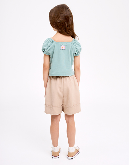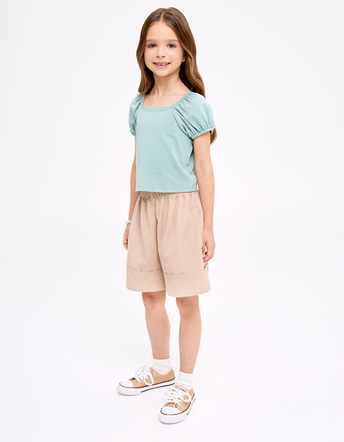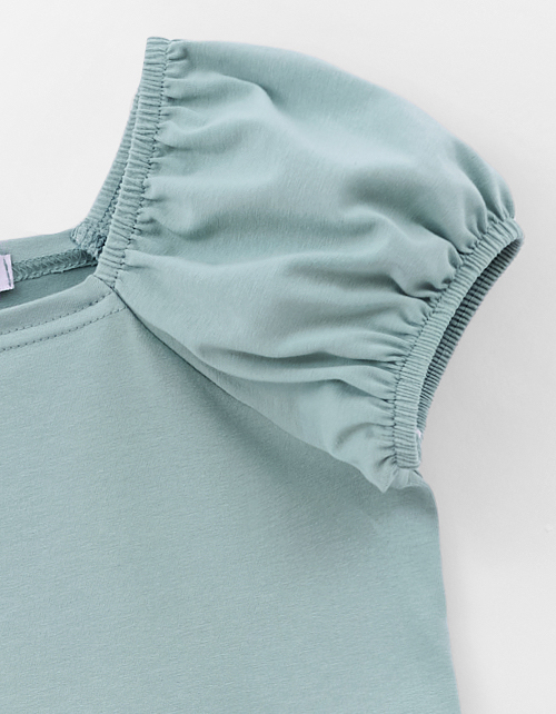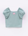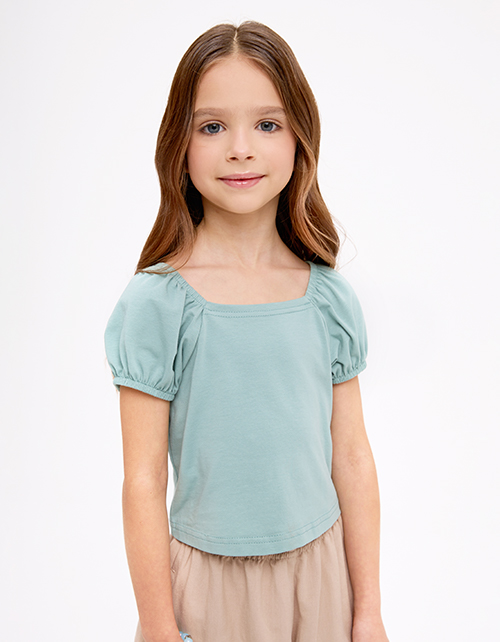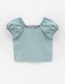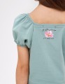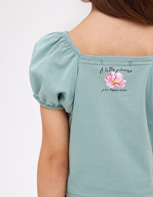 Мятный укороченный топ из мягкого хлопка создаёт свежий, современный образ. Вырез-каре подчёркивает линию плеч и делает силуэт выразительным. Эластичная лента по верху и низу рукава обеспечивает комфорт. DTF-печать добавляет аккуратный акцент.