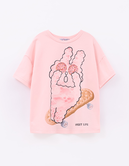 Пудрово-розовая футболка из мягкого хлопка создаёт лёгкое, спокойное настроение. Oversize посадка и прямой крой дают свободу движений. Приспущенная линия плеча подчёркивает расслабленный силуэт. Цифровой принт с термоплёнкой добавляет выразительный акцент