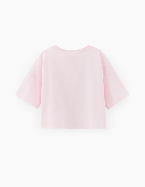 Укороченная светло-розовая футболка для девочки