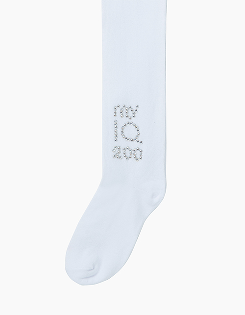 Белые колготки из мягкого хлопка. Декорированы серебристыми стразами