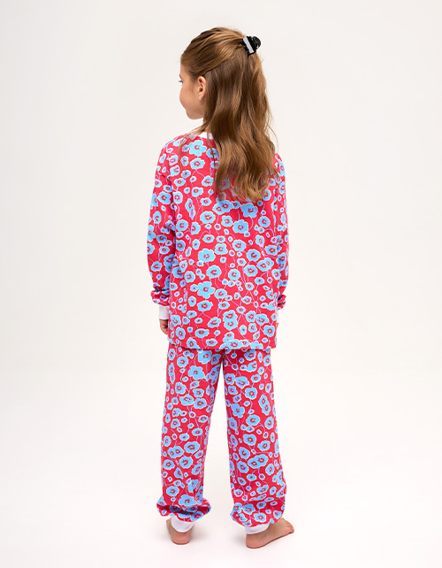 Комплект для сна и отдыха из натурального хлопка для девочки: лонгслив и брюки с фантазийным принтом. Дышащая ткань и контрастные эластичные манжеты дарят лёгкость и комфорт. Яркая дизайнерская гипоаллергенная пижама создаёт атмосферу уюта и веселья.