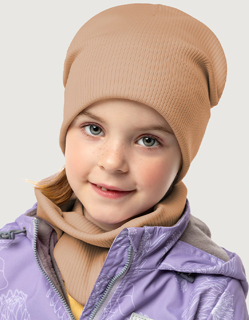 Лёгкий комплект для ребёнка: шапка с отличной посадкой не сползает, снуд удобно надевается и заменяет шарф. Без утеплителя - идеален для тёплого межсезонья и прохладного лета. Цвет какао - мягкий акцент на каждый день.