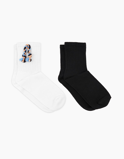 Две пары носков для девочки. Лимитированная коллекция. Высокая удобная резинка. Чёрная пара без декора. Белые носки с авторским декором ручной работы. Гармонично дополнят любой образ.