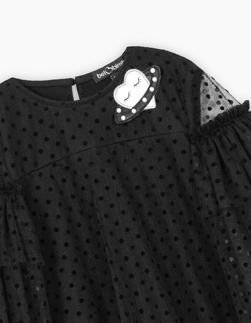 Чёрное нарядное платье в горошек для девочки
