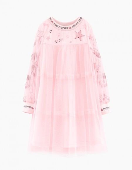 Дизайнерское платье для девочки. Модель комфортного А-образного силуэта, сзади дополнительный романтичный волан. Приспущенная линия плеча. Горловина и манжеты из эластичной рибаны. Платье полностью декорировано авторскими принтами.