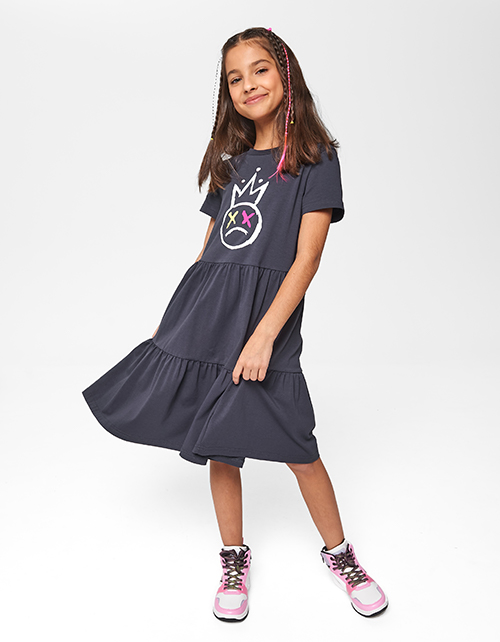 Графитовое платье с коротким рукавом