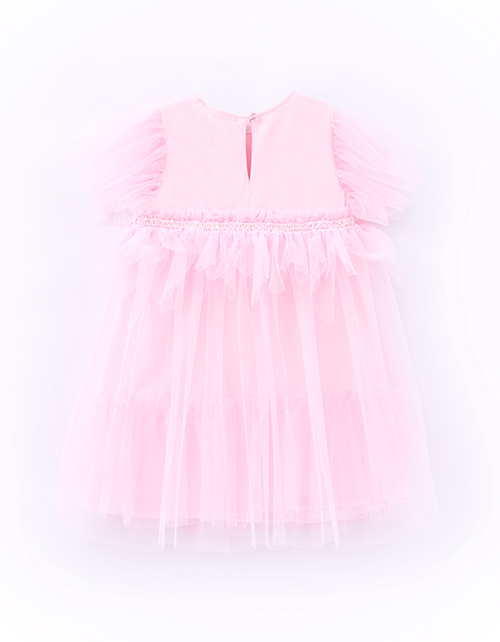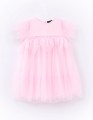 Дизайнерское платье в нежном оттенке для девочки. Комфортный А?образный силуэт с сетчатым подъюбником создаёт воздушность. Объёмные рукава?лепестки и декоративная лента превращают модель в платье?цветок. Пуговичка на спинке - нежный акцент.