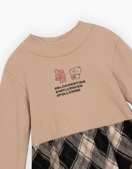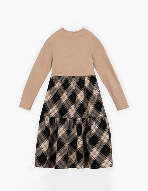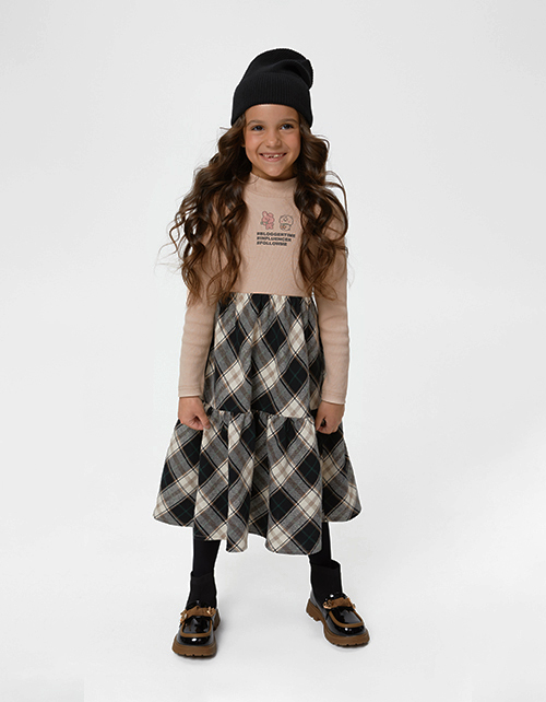 Осеннее платье с длинным рукавом для девочки. Комфортная модель трапециевидного силуэта. Длина ниже колен. Изделие без застёжки. Платье из комбинации эластичной рибаны и фланели. Воротник-стойка из рибаны. Авторский деликатный декор в стиле коллекции.