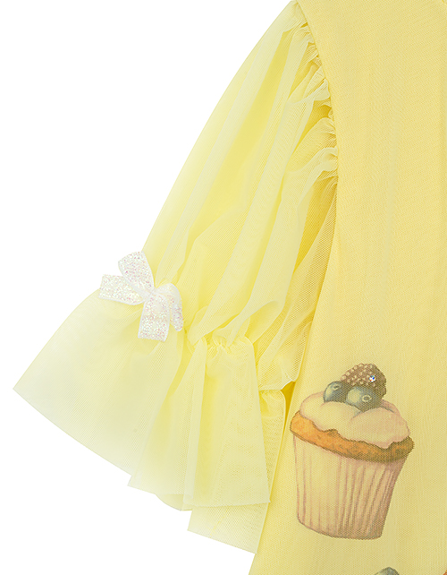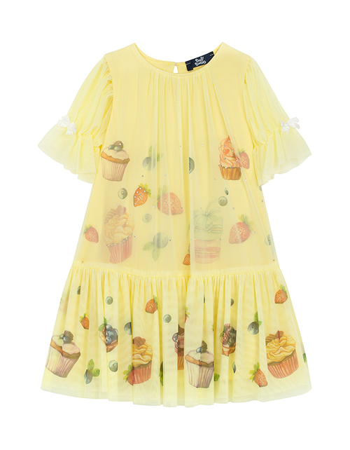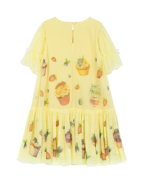 Нежное платьице с романтичными сборками и воланами станет самым любимым в гардеробе Вашей девочки! Оно дарит лёгкость и невероятный комфорт в течение всего дня! Милый принт с аппетитными сладостями каждый раз будет приводить Вашу малышку в восторг