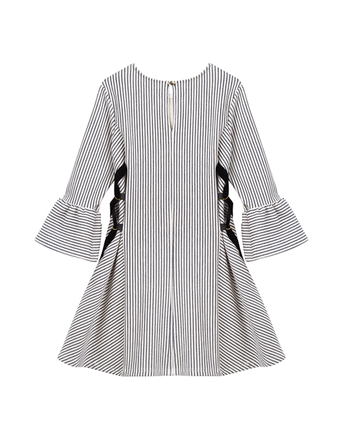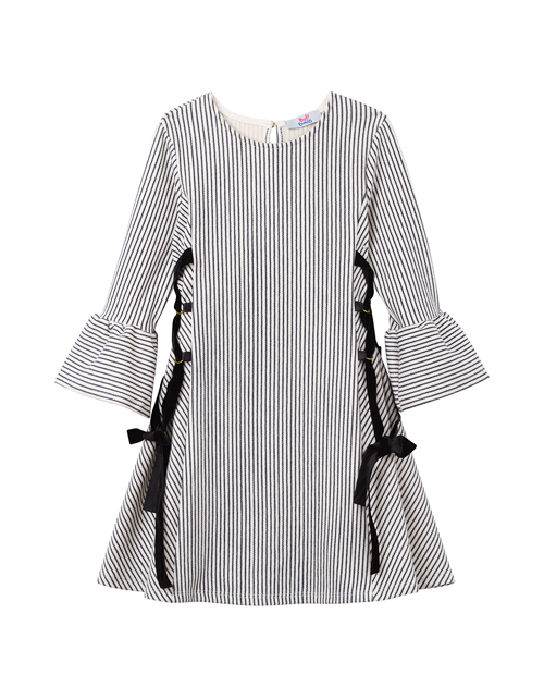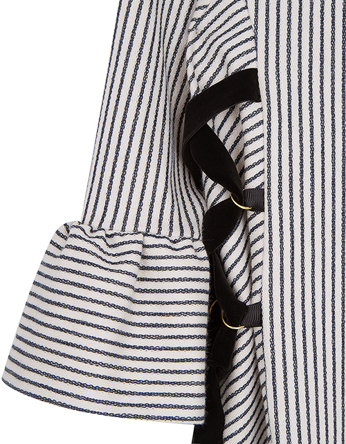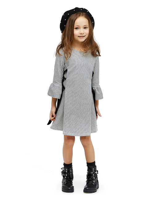 Модное элегантное платье из натуральной, приятной к телу ткани для самой стильной красавицы. Совершенный парящий образ создают воздушные, невесомые рюши, игривые ленты и авторская комбинация полосок, подчеркивающая очаровательный приталенный силуэт