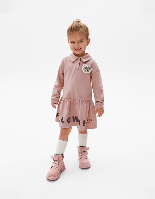 Комфортное платье А-образного силуэта с длинным рукавом. Модель комбинированная из эластичной рибаны и фланели. Воротник-стойка из рибаны. Изделие без застёжки.