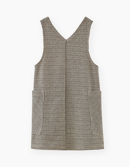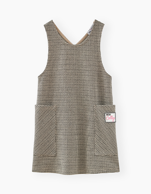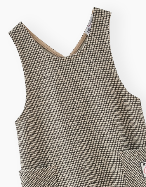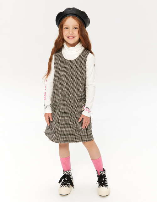 Стильный клетчатый сарафан А-образного силуэта. Модная модель в трендовой форме с большими накладными карманами. Сарафан декорирован вышивкой.