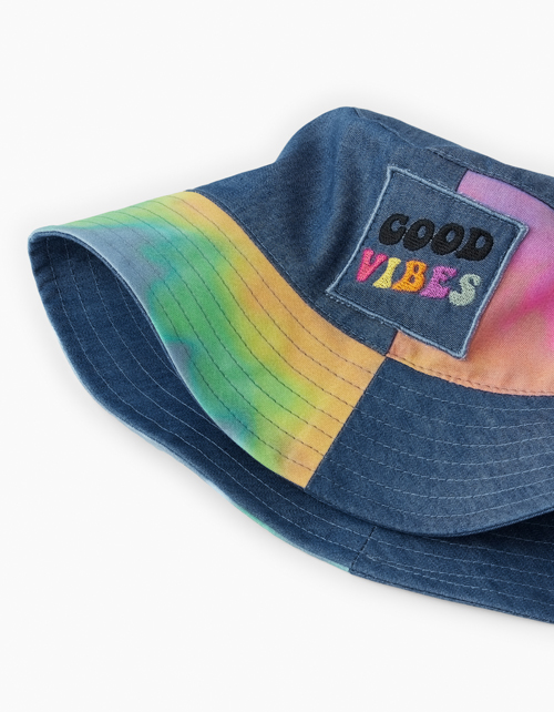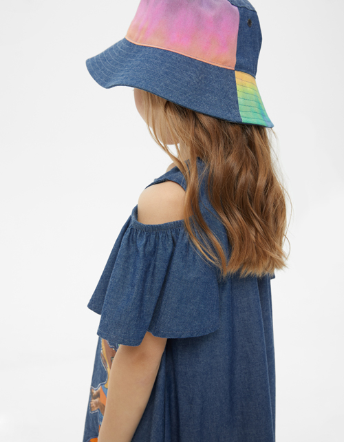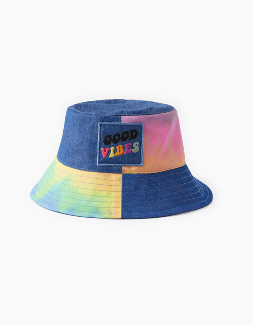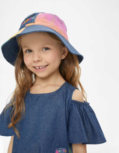 Панама для девочки. Модель из джинса и сорочечной ткани. Изделие декорировано вышивкой-лэйбой.