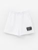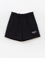 Чёрные шорты из мягкого футера с прямым, широким силуэтом создают расслабленный образ. Мягкий пояс с романтичной рюшей и эластичной лентой обеспечивает комфорт. Боковые карманы практичны, а лейба с кружевом добавляет аккуратный декоративный акцент.