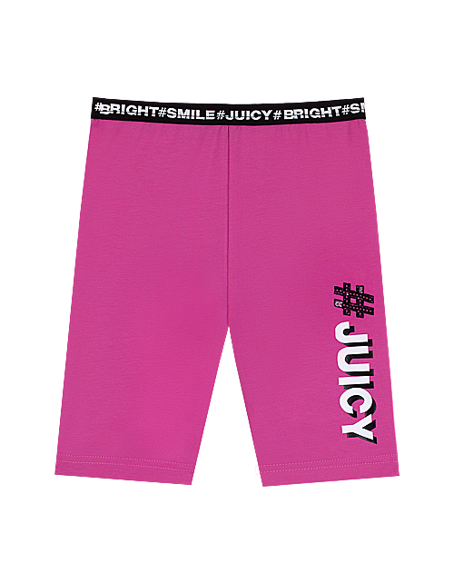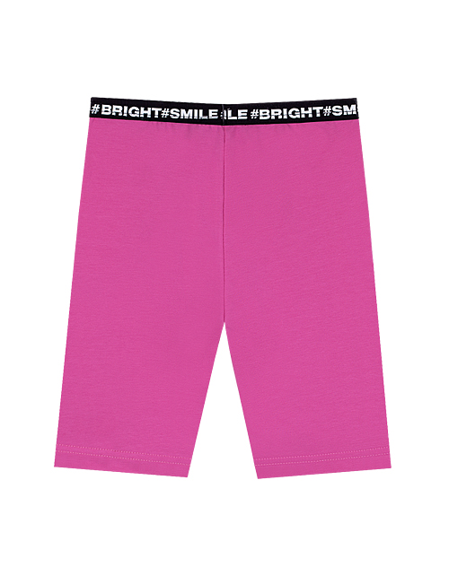 Розовые шорты для девочки. Черная резинка на поясе. Принты-надписи в стилистики капсулы "Фруктовый микс".